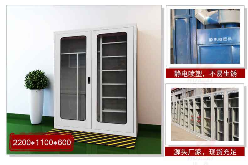 電力安全工具柜又稱安全工器具柜,按功能可以分為普通排風除濕柜,智能烘干除濕柜,智能抽濕除濕柜等 外殼選用1.2優質冷板,采用磷化鋅系、藝術型靜電噴涂,高強度鋼化透明玻璃(外觀色為微機灰)。接地線均配有接地線繞線架及帶夾反光編號牌,使接地線纏繞規范不易損壞,擺放整齊使用方便;絕緣手套配有防粘連撐板,絕緣擋板、絕緣棒、驗電筆、操作桿均設有橡膠墊定位卡,安全帶、腳扣、鑰匙設有專用掛鉤,標示牌按種類分格放置,圍網配有專用包,網桿配有專用筒,網桿座分格放置,防毒面具配有專用箱,呼吸器設有專用滑板。廣泛應用于各種電壓等級的變電站、集控站、線路工區以及電力公司客服中心等單位和部門,并適應不同溫濕度地區的使用。